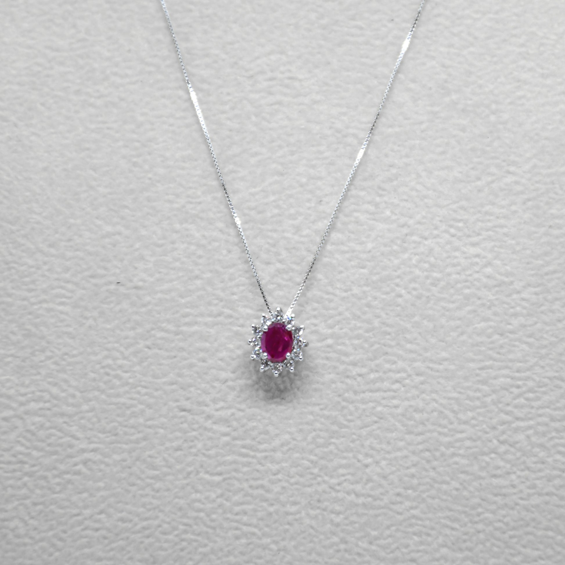 Collana in oro bianco 18 kt con brillanti 0,14 e rubino 0,30 ct